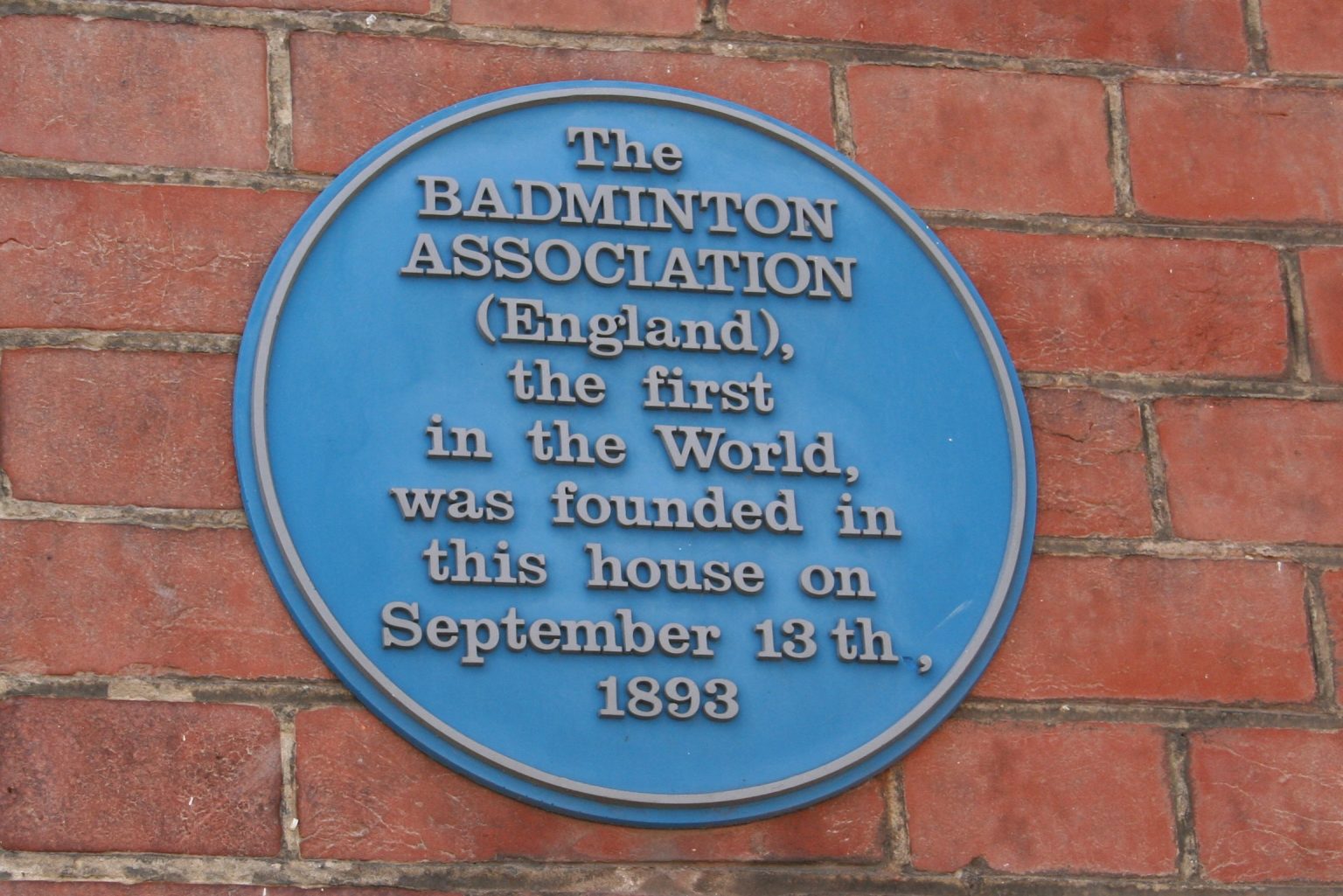 Η μπλε πλάκα που αποκάλυψαν κατά τη διάρκεια των εκδηλώσεων για τα 100 χρόνια της Ομοσπονδίας το 1993, στο δεξιό μέρος της πρόσοψης του κτιρίου (πηγή: National Badminton Museum)