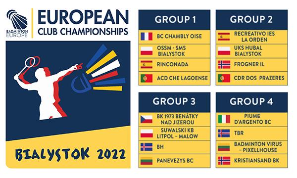 Το Ευρωπαϊκό Πρωτάθλημα Σωματείων 2022, θα πραγματοποιηθεί από 28/6-2/7/2022 στο Μπιαουίστοκ (Białystok) της Πολωνίας, σύμφωνα με τον προγραμματισμό της Ευρωπαϊκής Συνομοσπονδίας. Στους αγώνες θα πάρουν μέρος 16 σύλλογοι σε 4 γκρουπ, όπως φαίνεται και από την κεντρική φωτό. Περισσότερα, στο σχετικό άρθρο της Ευρωπαϊκής Συνομοσπονδίας.