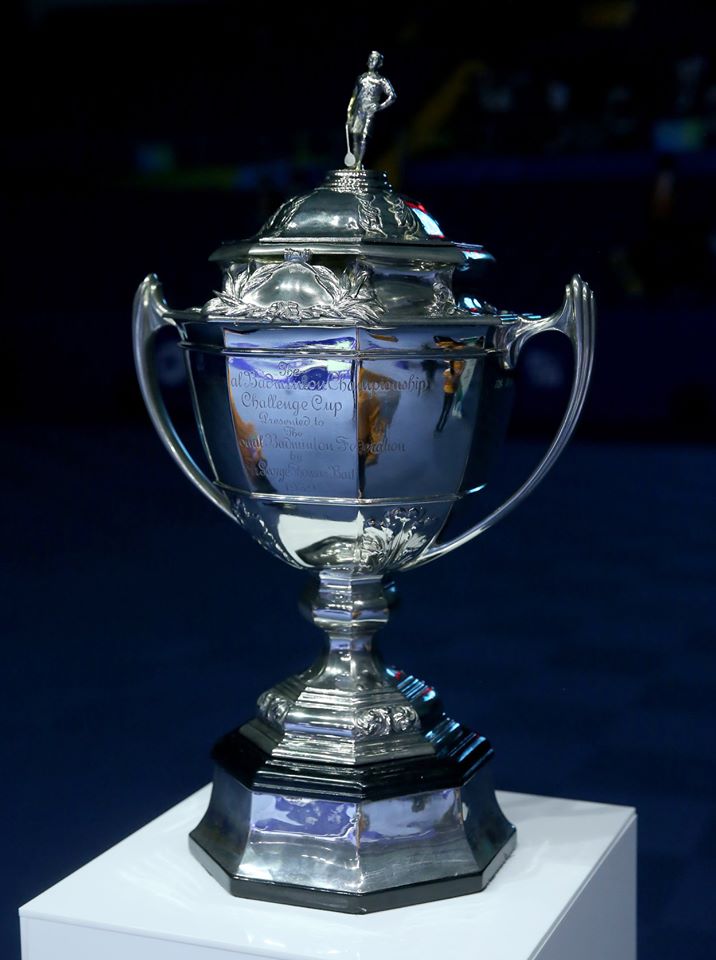 Την ίδια χρονιά, ο Sir George παρουσίασε το Thomas Cup, επίσημα γνωστό ως The International Badminton Championship Challenge Cup, που παρήγαγε ο Atkin Bros του Λονδίνου με κόστος 40.000 US $. Το κύπελλο έχει ύψος 28 ίντσες και πλάτος 16 ίντσες στο πλάτος του και αποτελείται από τρία μέρη: πλίνθο (βάθρο), μπολ και καπάκι με σχήμα παίκτη.