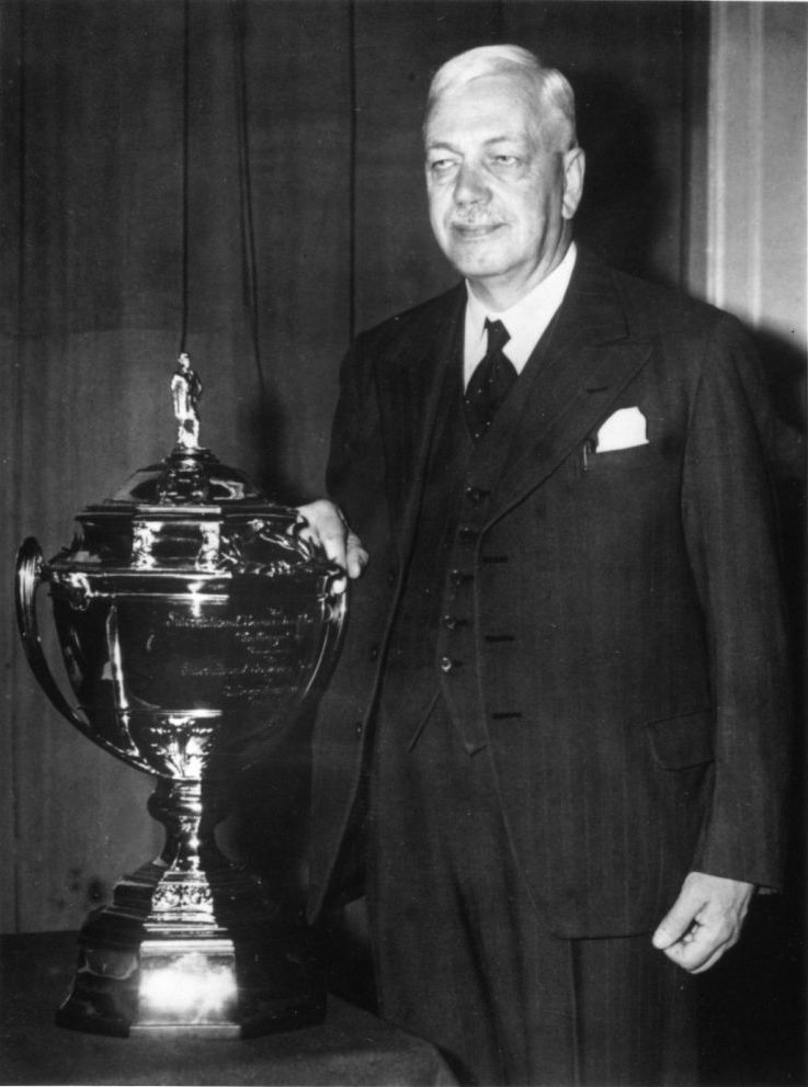 Ο Σερ Τζόρτζ Άλαν Τόμας με το κύπελο του πρωταθλήματος που πήρε τ' όνομά του