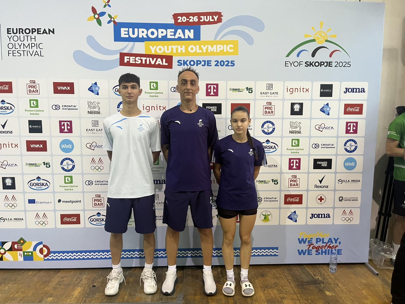 Πολύ καλή ήταν η παρουσία της Ελλάδας στο Ολυμπιακό Φεστιβάλ Νέων 2025, που πραγματοποιήθηκε στα Σκόπια από 20-26 Ιουλίου. Τη χώρα μας εκπροσώπησαν στο μπάντμιντον ο Ζήσης Πέγιος και η Μελίνα Αναστασίου, με συνοδό προπονητή τον Κώστα Ραφτόπουλο. Και οι δυο αθλητές πέτυχαν 3 νίκες στον όμιλό τους στο μονό, με το Ζήση να περνά στο κυρίως ταμπλό και τη 16άδα. Στο μεικτό, οι δυο αθλητές έπαιξαν δυναμικά και βρέθηκαν στη 16άδα, παίρνοντας πολλές εμπειρίες από τη διοργάνωση. Συγχαρητήρια από την ιστοσελίδα μας!!!